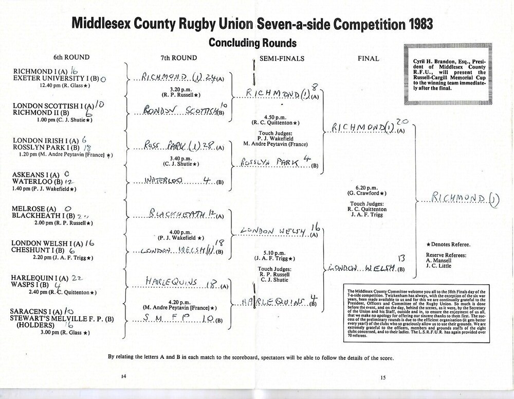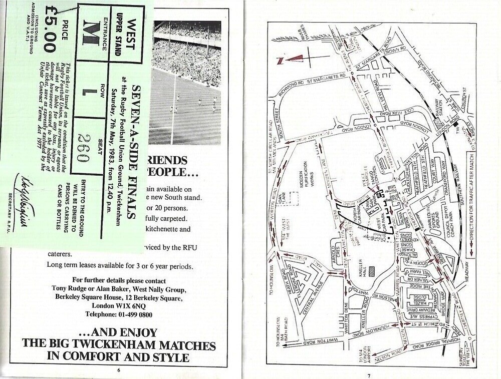 1983 Middlesex Sevens Rugby Union Programme & Match Ticket