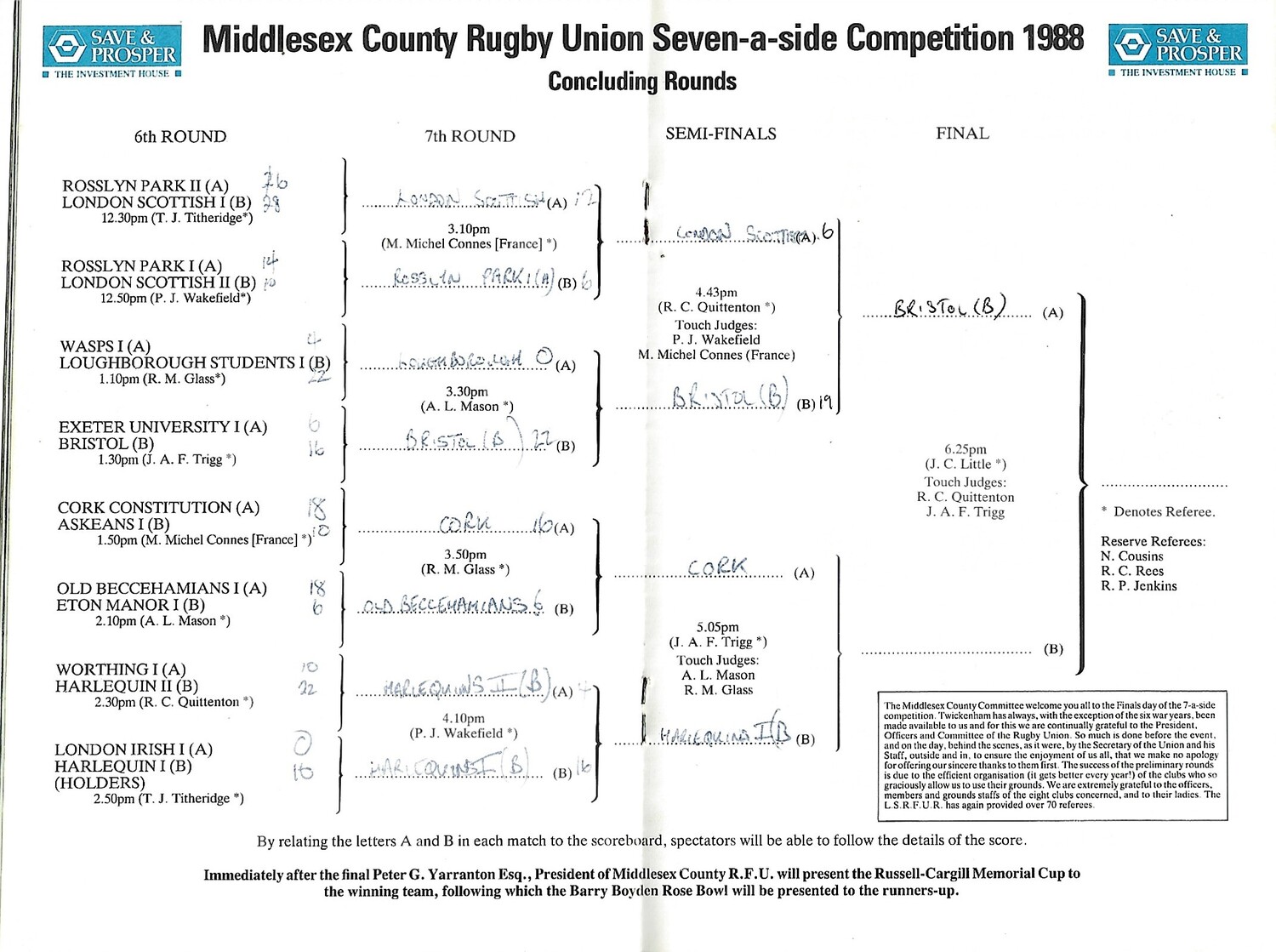 1988 Middlesex Sevens Rugby Union Programme