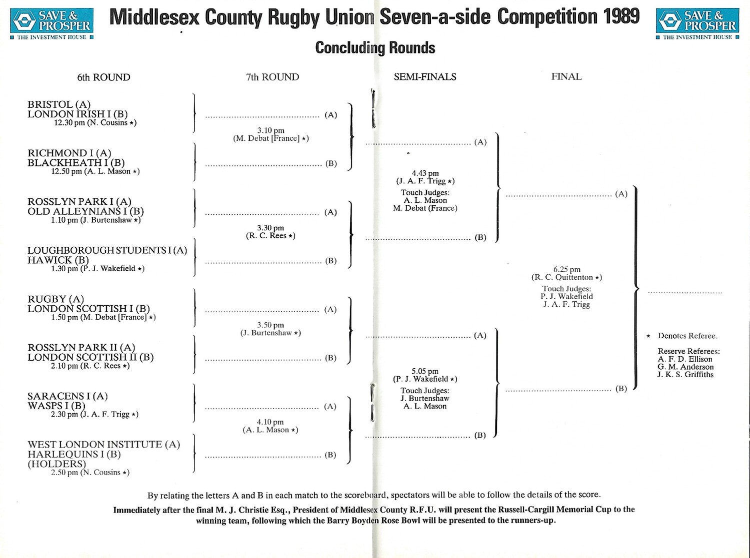 1989 Middlesex Sevens Rugby Union Programme