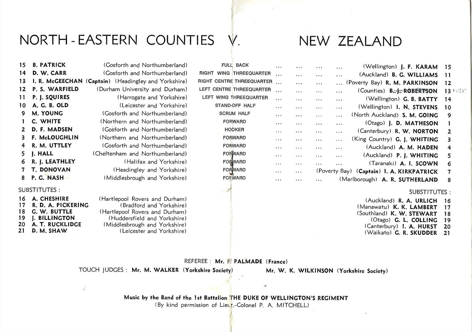 1972/73 North-Eastern Counties v New Zealand (09/12/1972) Tour Match Rugby Union Programme