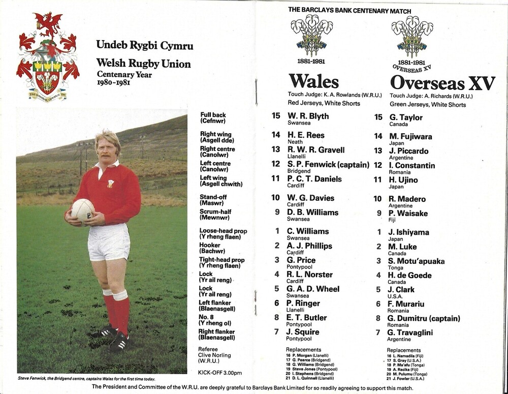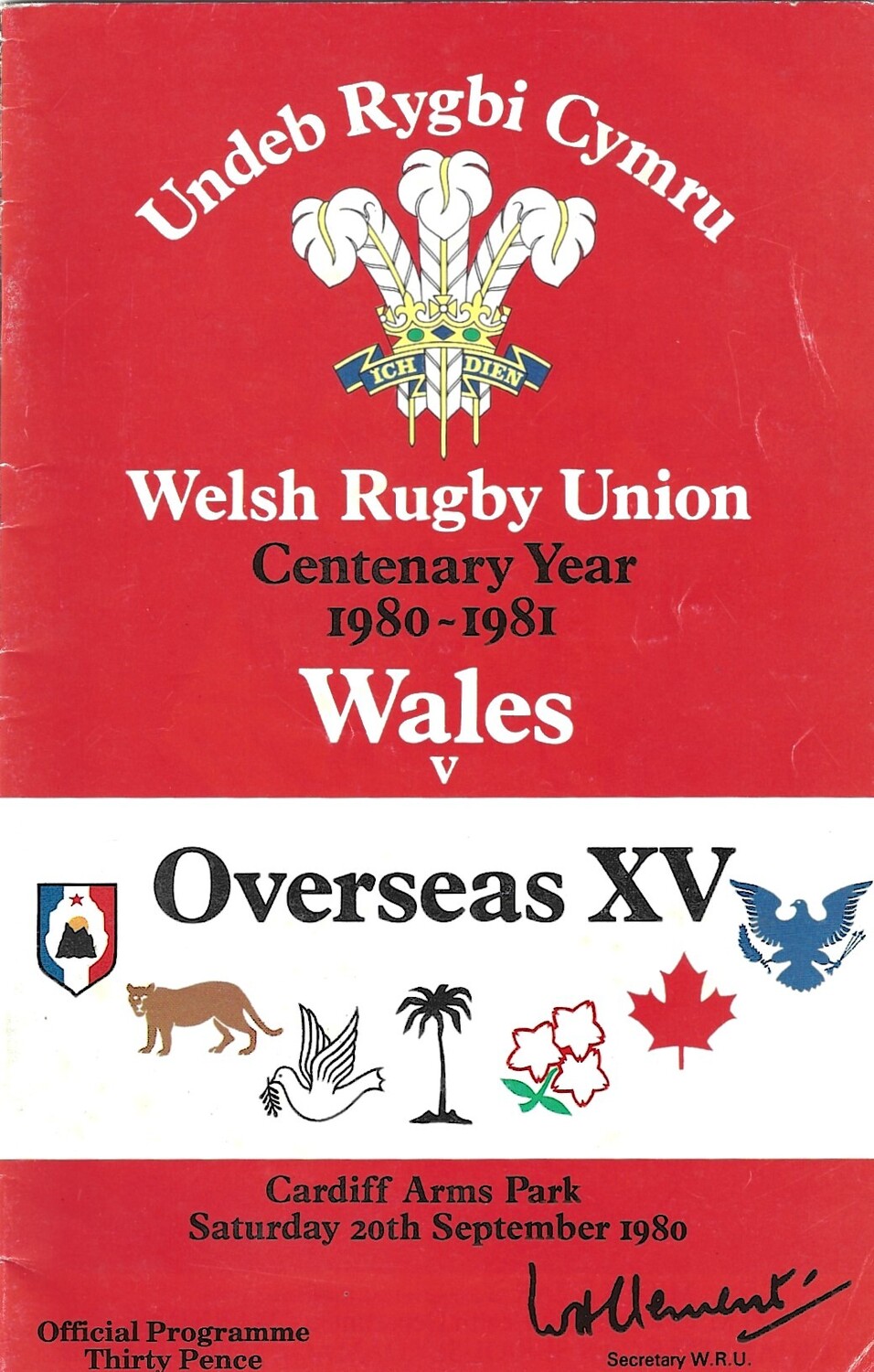 1980 Wales v Overseas XV WRU Centenary Year 1980-1981 International Rugby Union Programme