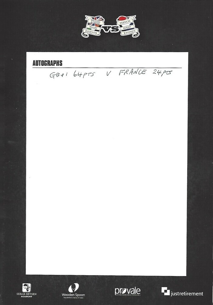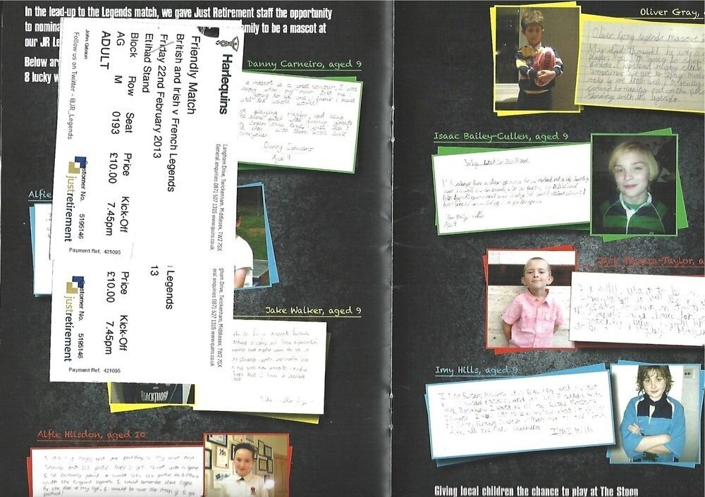 2013 British & Irish Legends v French Legends Rugby Union Programme & Match Ticket