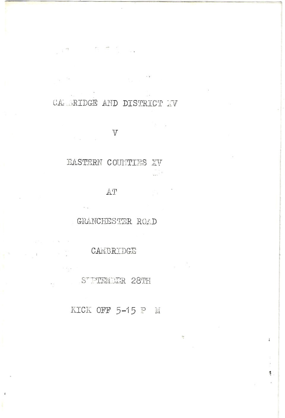 1963/64 Cambridge & District XV v Eastern Counties XV (28/009/1963) Rugby Union Programme