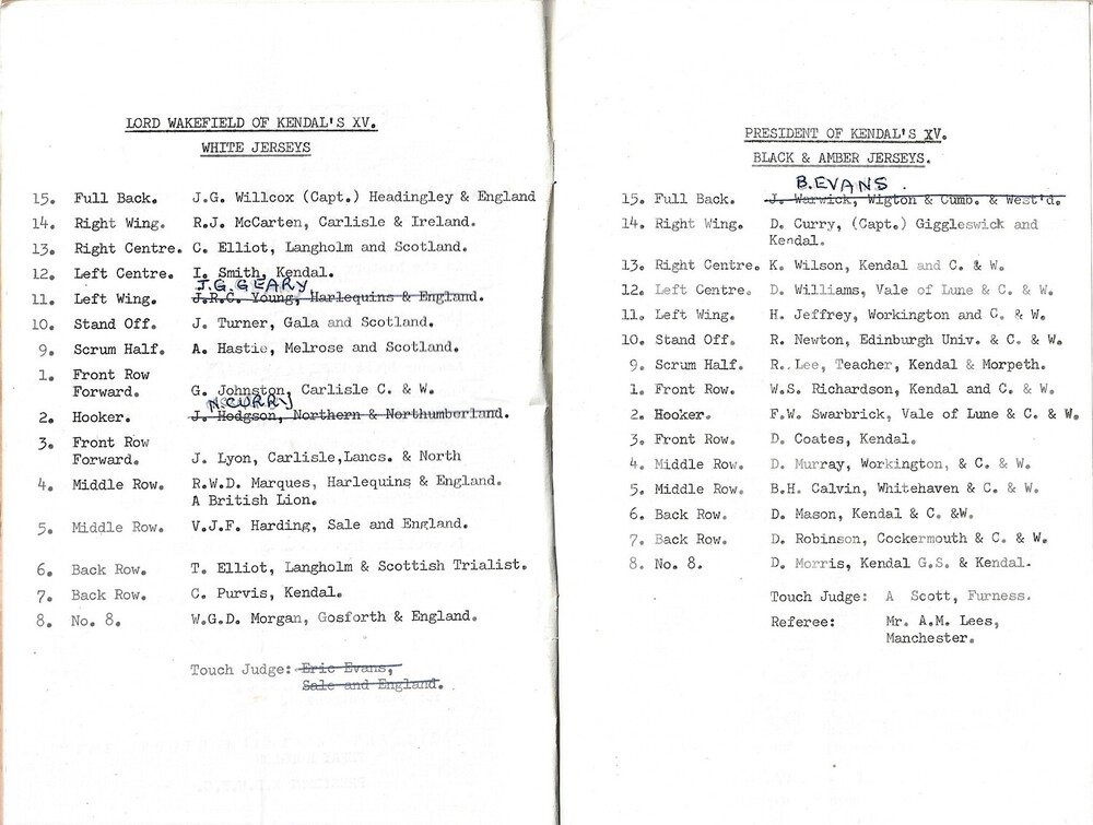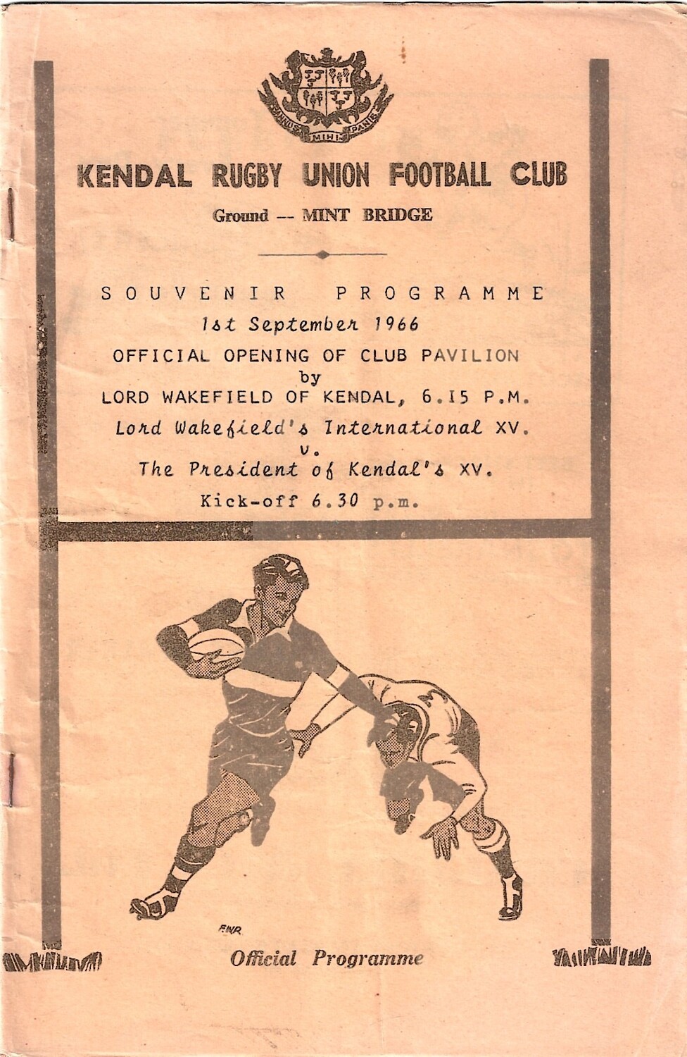 1966/67 Lord Wakefield's International XV v The President of Kendal's XV Rugby Union Programme