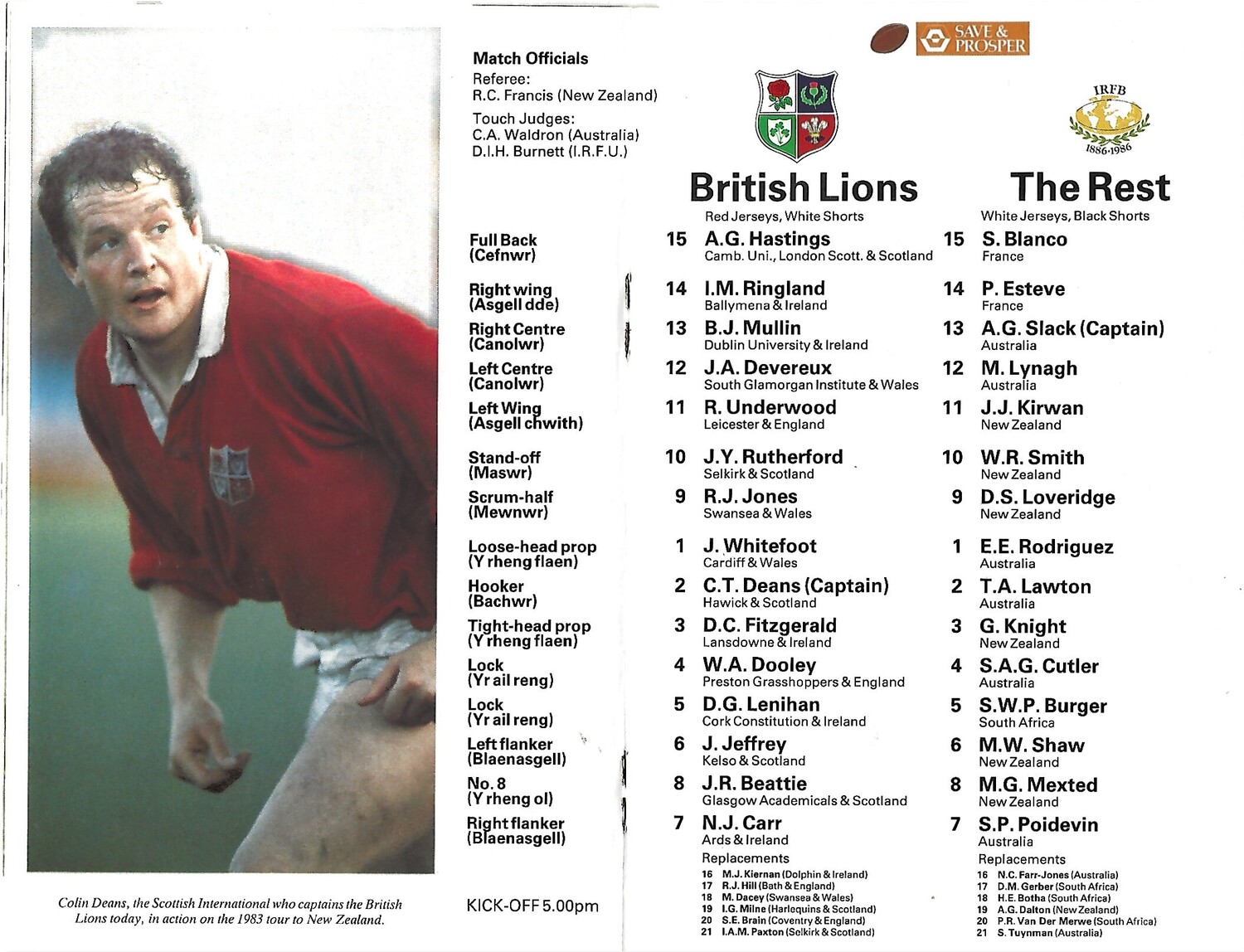 1986 British Lions v The Rest (16/04/1986) Rugby Union Programme