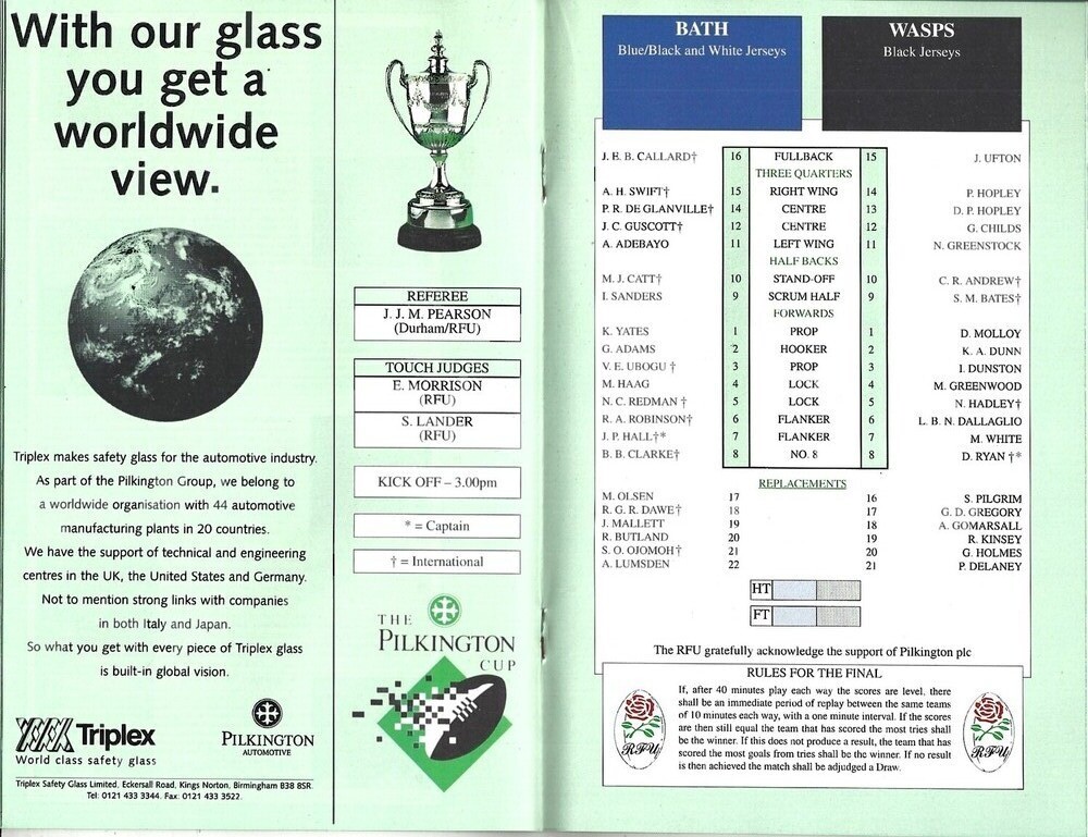 1995 Bath v Wasps Pilkington Cup Final Rugby Union Programme