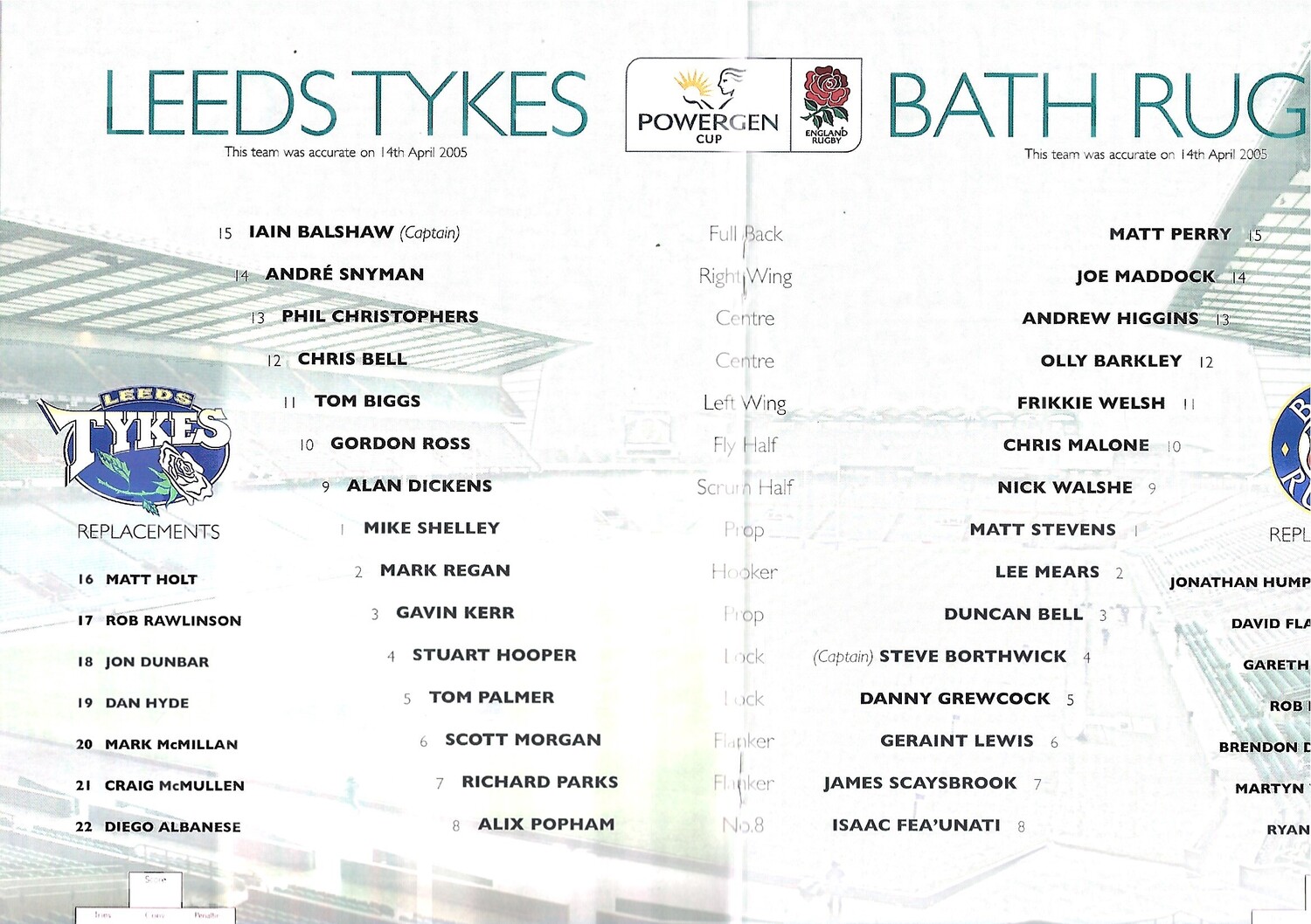2005 Leeds Tykes v Bath Rugby Powergen Cup Final Rugby Union Programme
