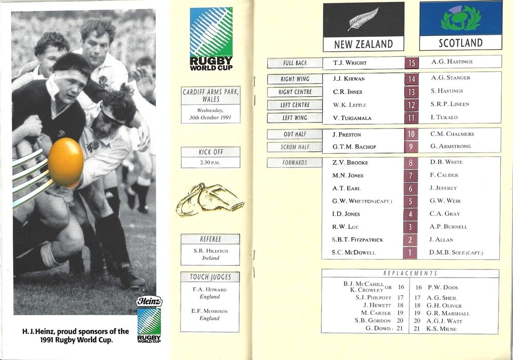 1991 New Zealand v Scotland Rugby World Cup Play Off Rugby Union Programme