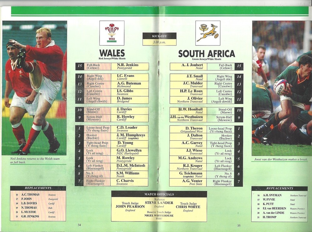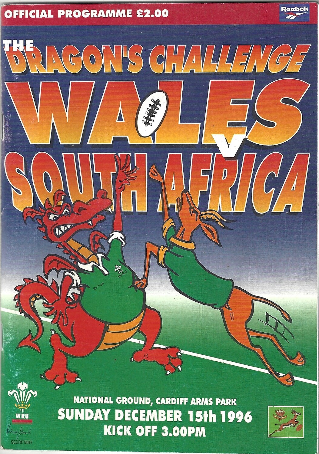 1996 Wales v South Africa International Rugby Union Programme