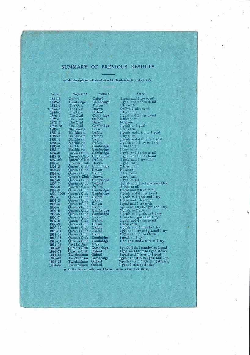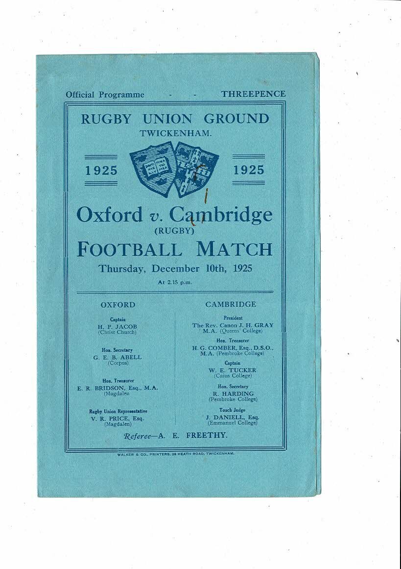 1925 Oxford v Cambridge Varsity Match Rugby Union Programme
