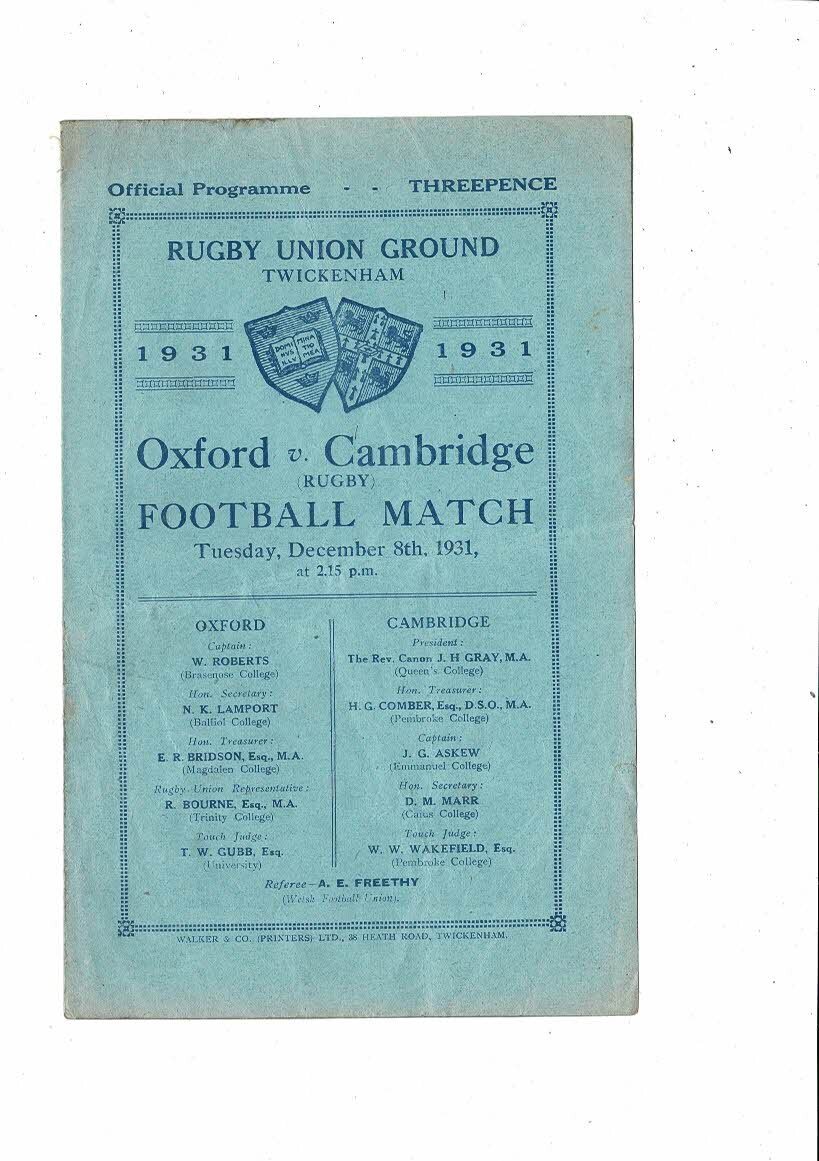 1931 Oxford v Cambridge Varsity Match Rugby Union Programme