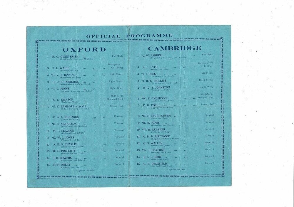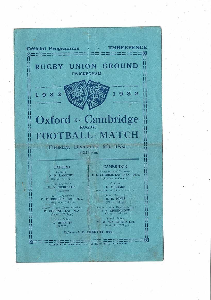 1932 Oxford v Cambridge Varsity Match Rugby Union Programme