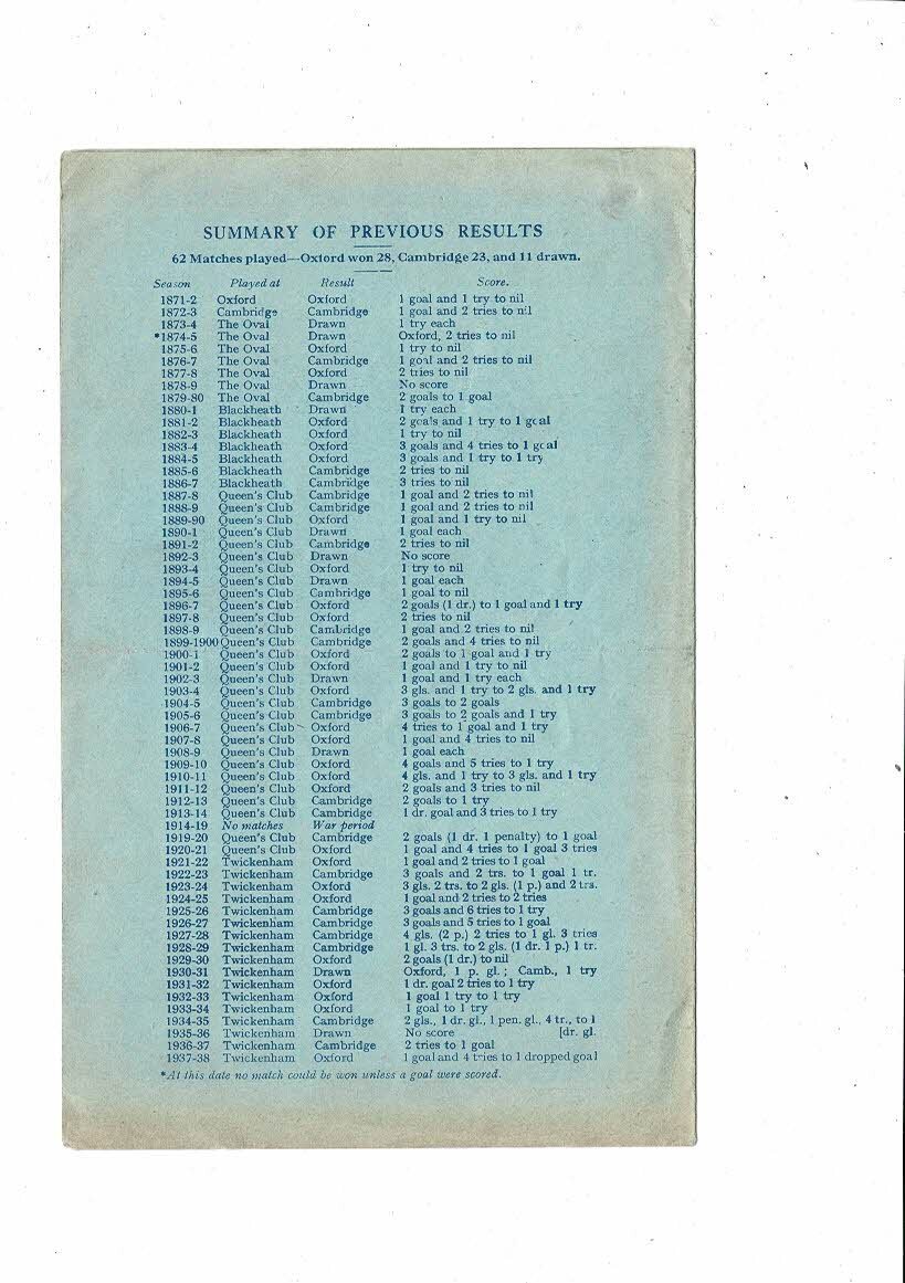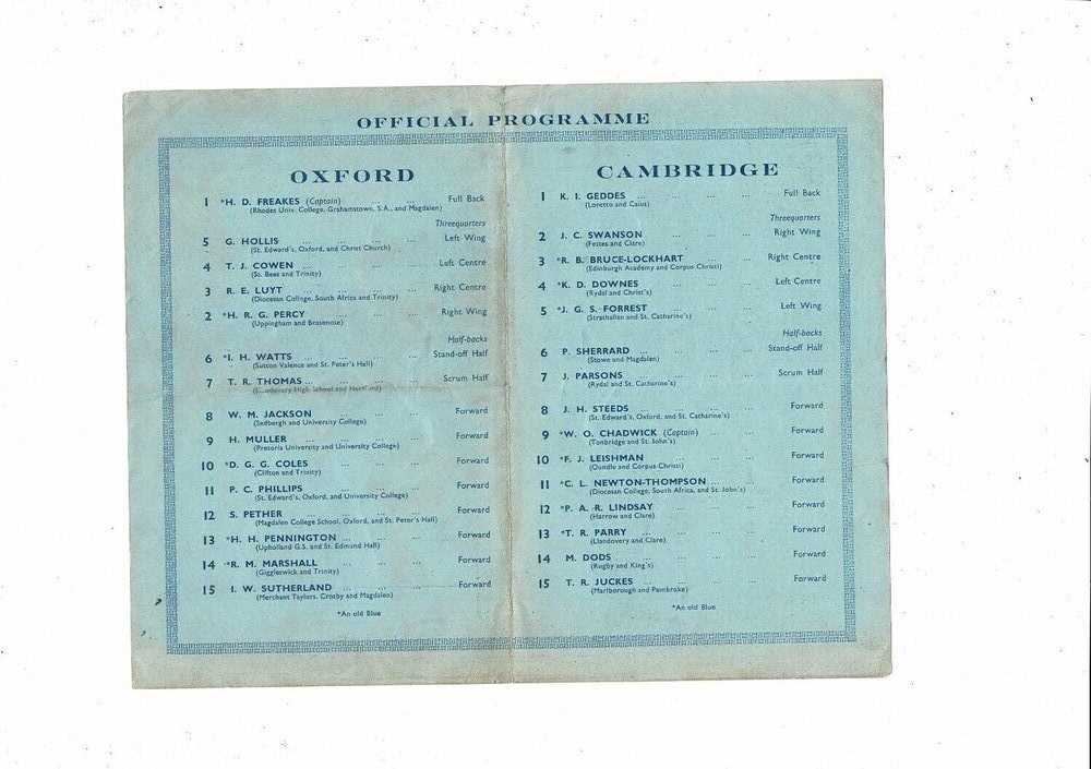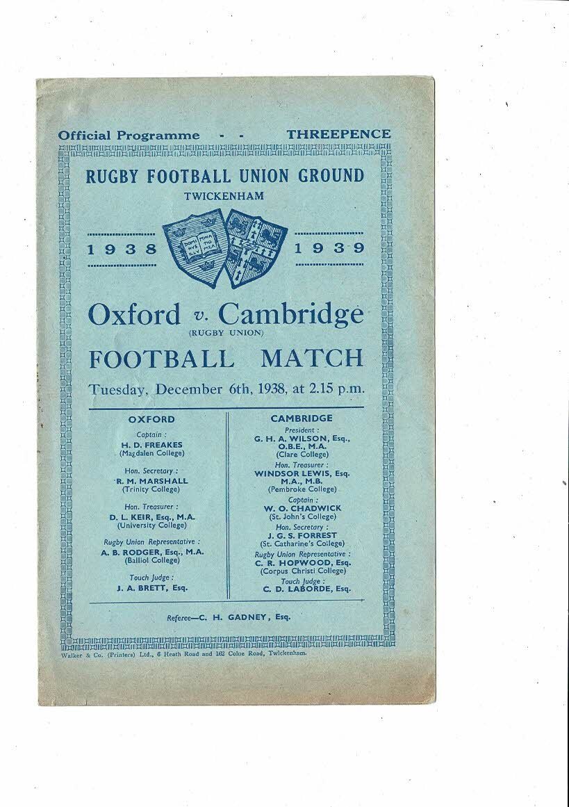 1938 Oxford v Cambridge Varsity Match Rugby Union Programme