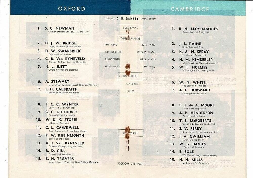 1947 Oxford v Cambridge Varsity Match Rugby Union Programme