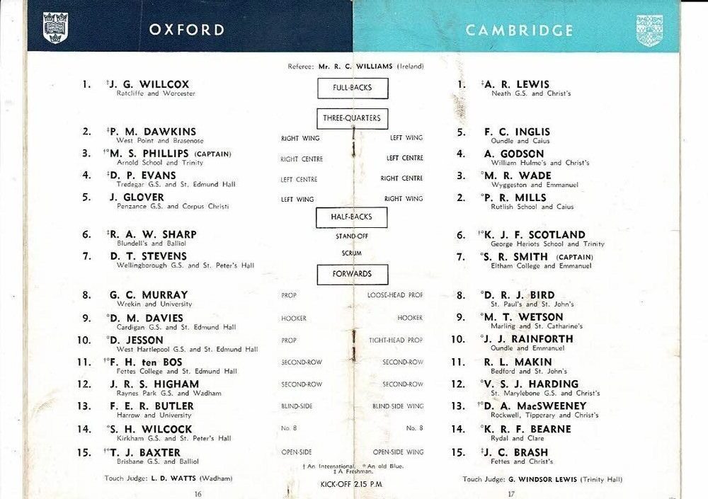 1959 Oxford v Cambridge Varsity Match Rugby Union Programme
