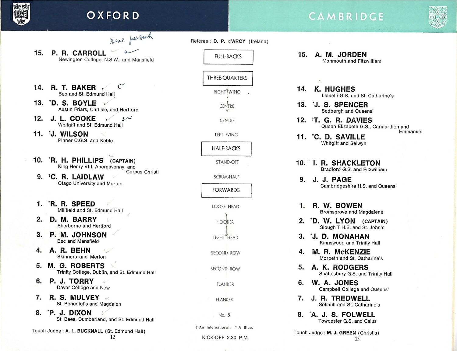 1968 Oxford v Cambridge Varsity Match Rugby Union Programme