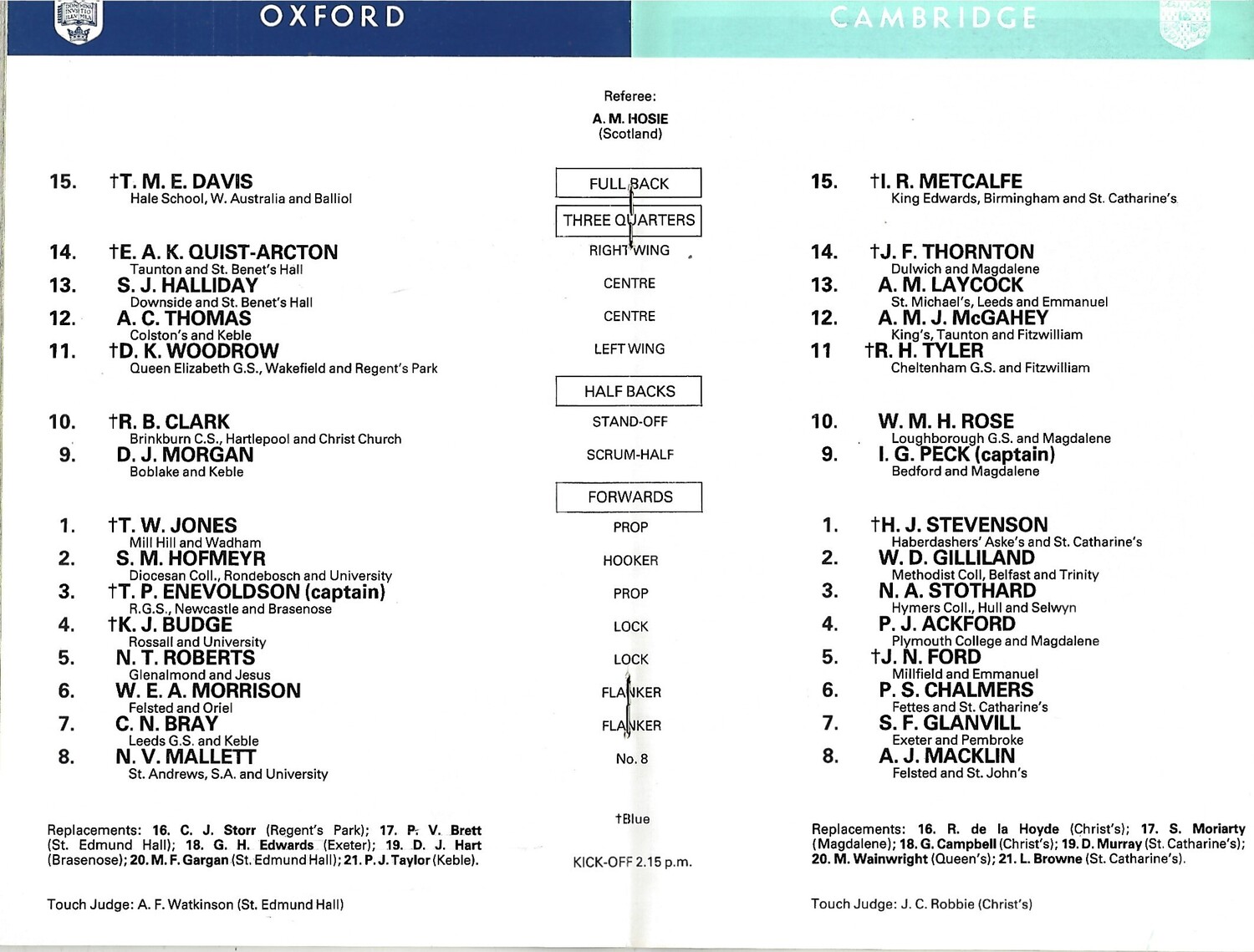 1979 Oxford v Cambridge Varsity Match Rugby Union Programme