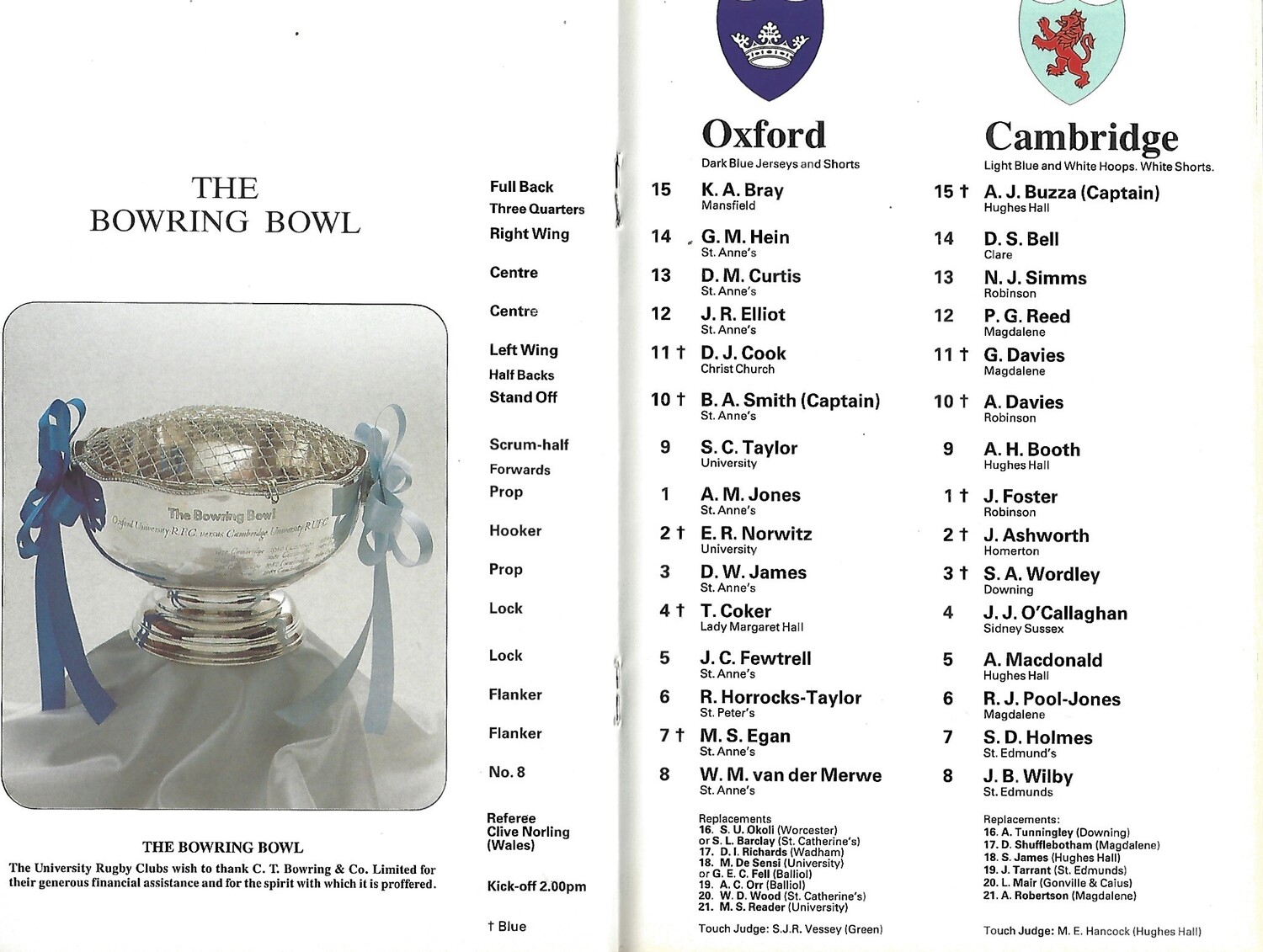 1989 Oxford v Cambridge Varsity Match Rugby Union Programme