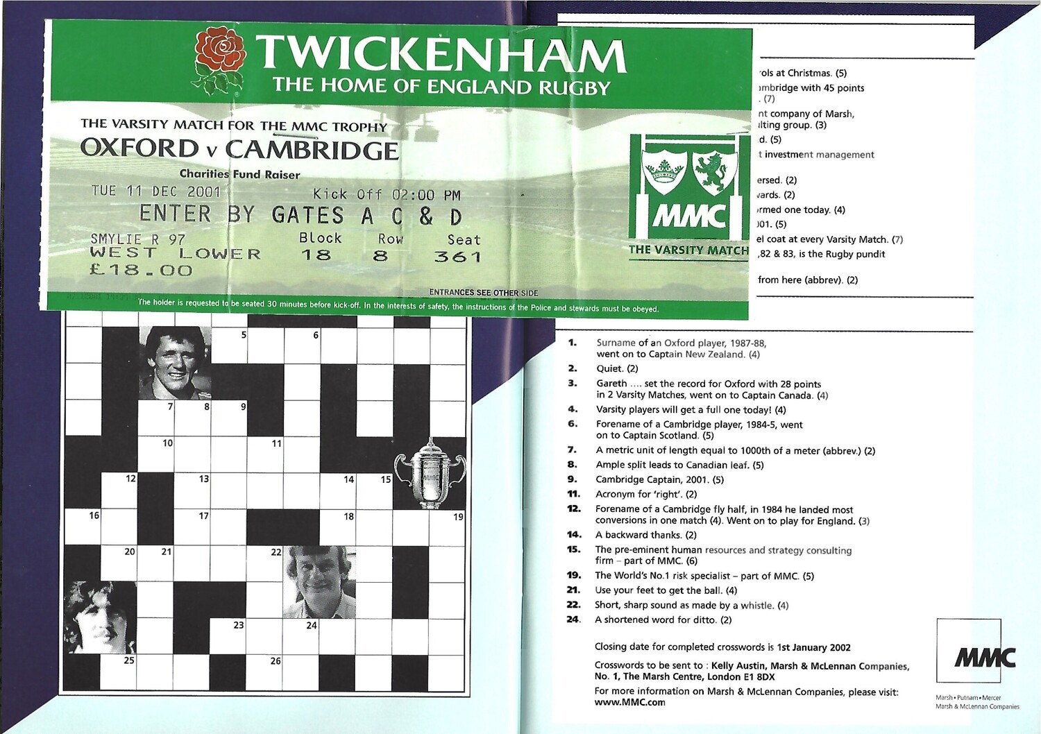 2001 Oxford v Cambridge Varsity Match Rugby Union Programme