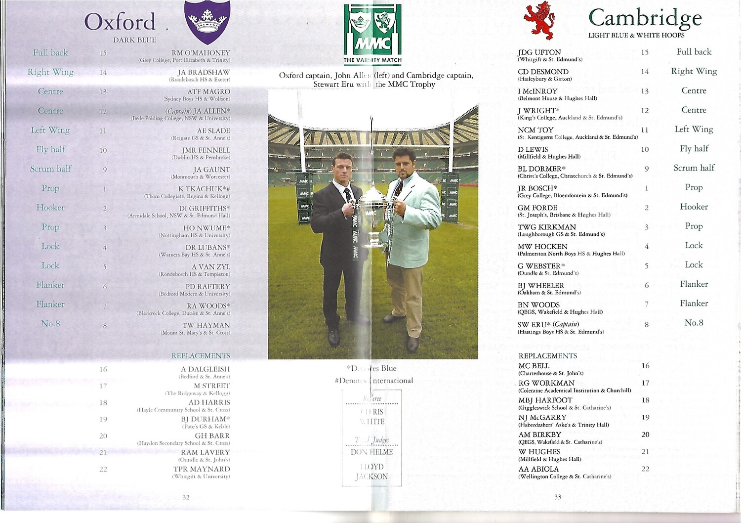 2003 Oxford v Cambridge Varsity Match Rugby Union Programme