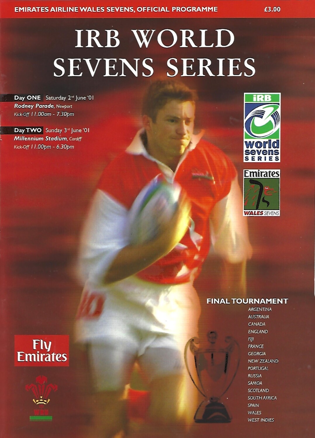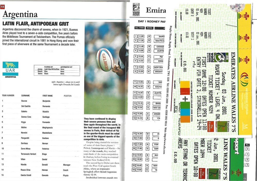 2001 Wales Sevens IRB World Sevens Series Rugby Union Programme & Match Ticket