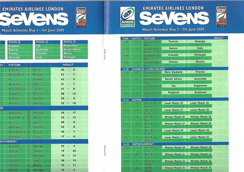 2005 London Sevens (Day 2) IRB World Sevens Series Rugby Union Programme