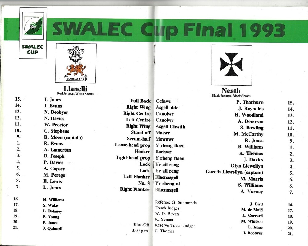 1993 Llanelli v Neath SWALEC Cup Final Rugby Union Programme