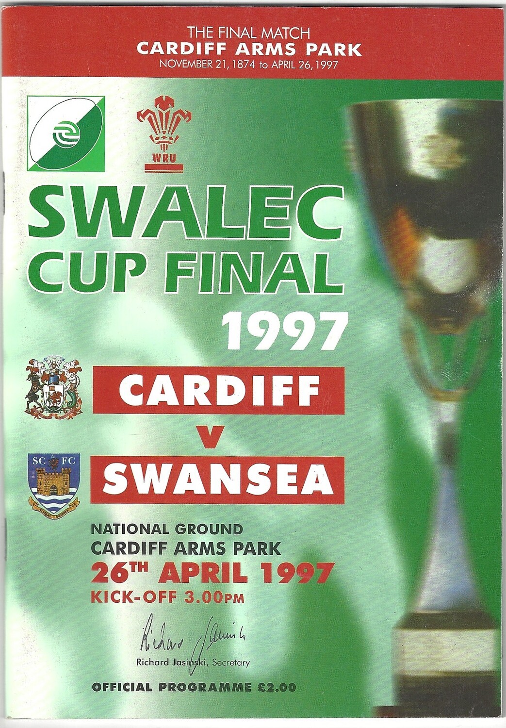 1997 Cardiff v Swansea SWALEC Cup Final Rugby Union Programme