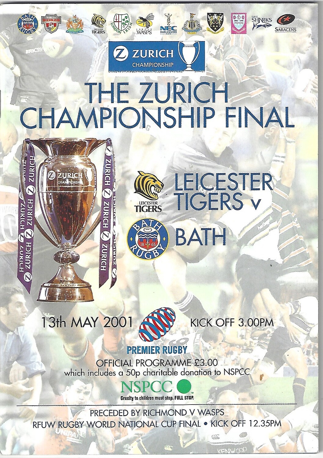 2001 Leicester Tigers v Bath The Zurich Championship Final Rugby Union Programme