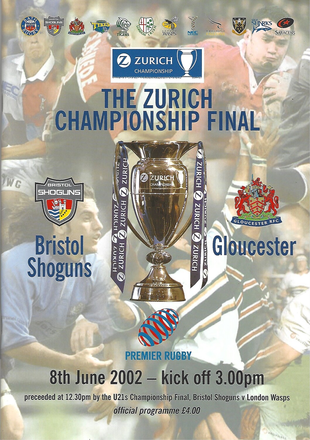 2002 Bristol Shoguns v Gloucester The Zurich Championship Final Rugby Union Programme