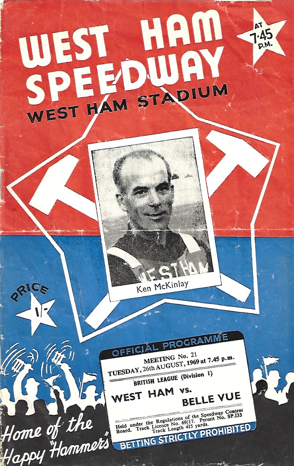 1969 West Ham v Belle Vue British League (26/08/1969) Speedway Programme