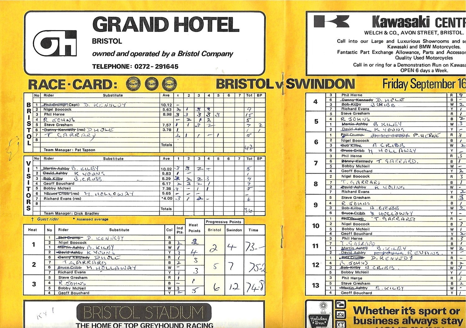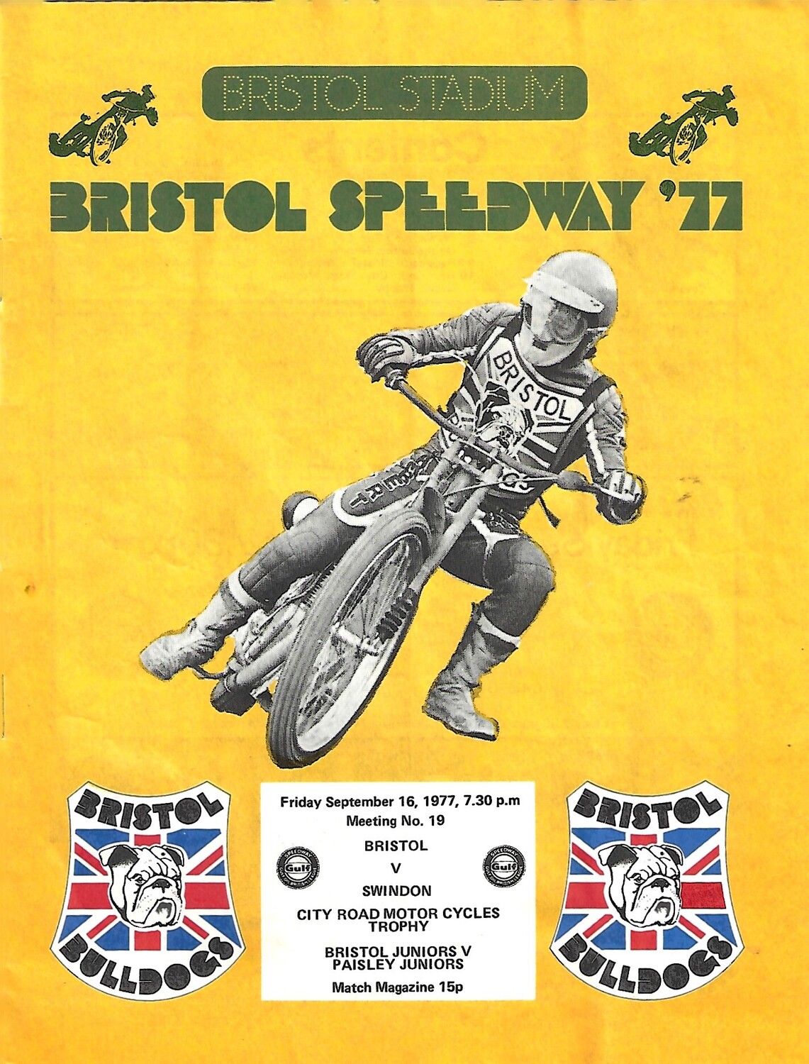 1977 Bristol v Swindon Gulf Oil British League (16/09/1977) Speedway Programme