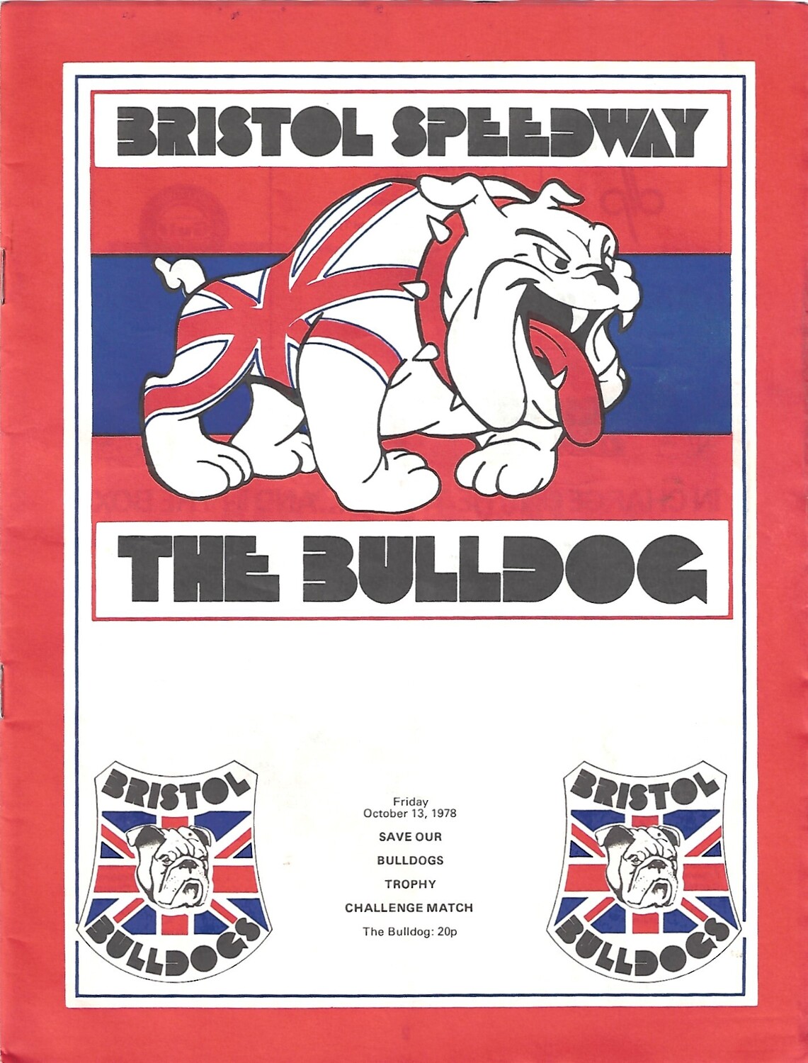 1978 Bristol v Ole Olsen Select Save Our Bulldogs Trophy Challenge Match (13/10/1978) Speedway Programme