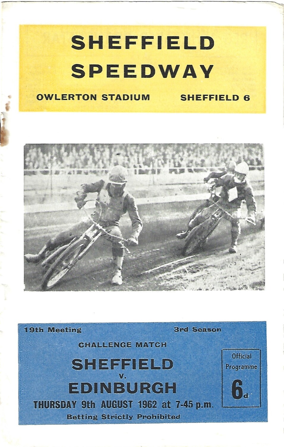 1962 Sheffield Tigers v Edinburgh Challenge Match (09/08/1962) Speedway Programme