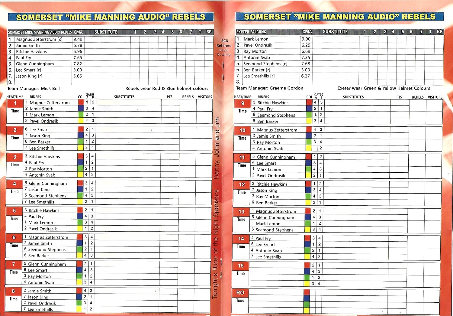 2005 Somerset "Mike Manning Audio" Rebels v Exeter Falcons (17/06/2005) Premier League Speedway Programme