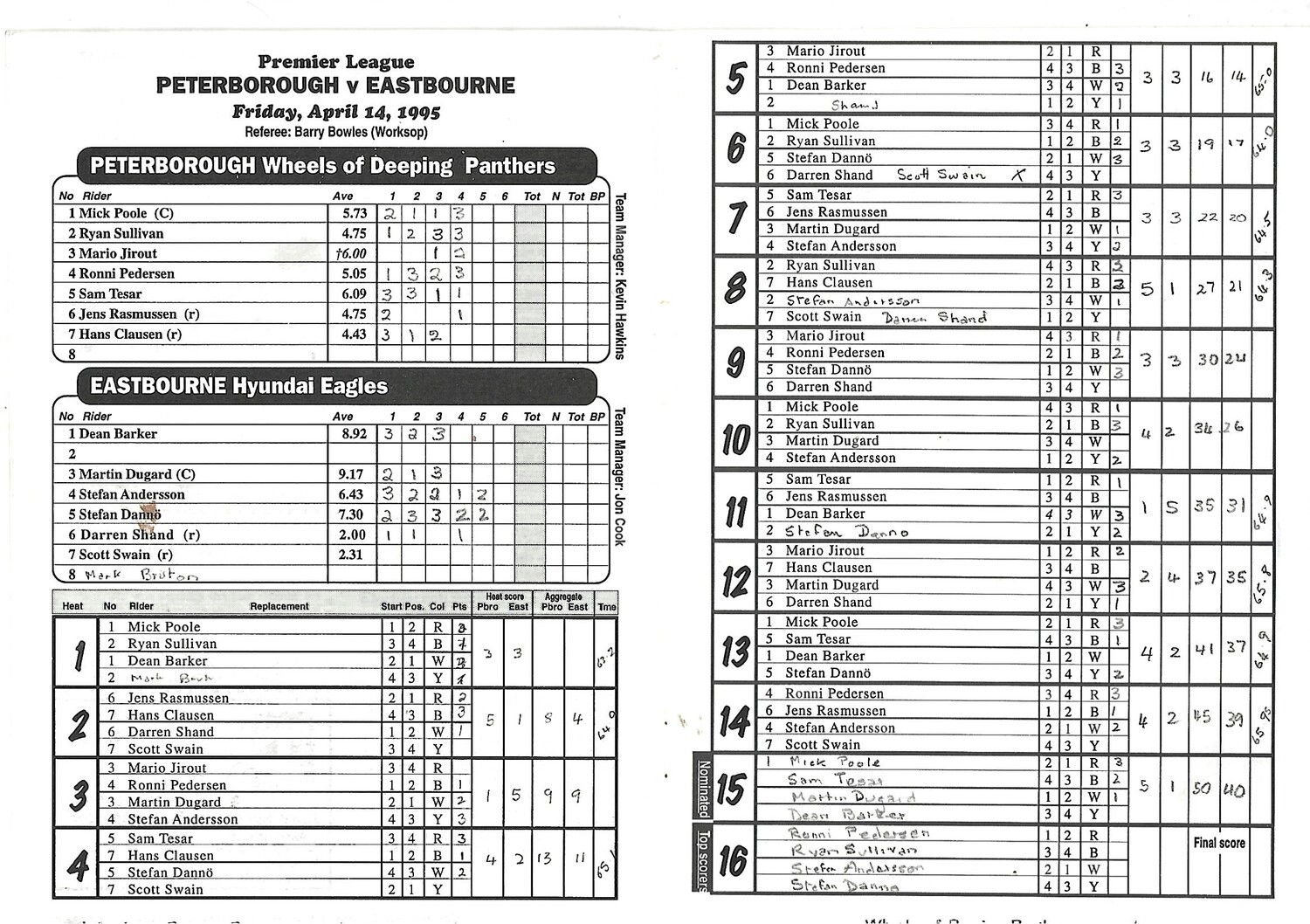 1995 Peterborough Wheels of Deeping Panthers v Eastbourne Hyundai Eagles Premier League (14/04/1995) Speedway Programme