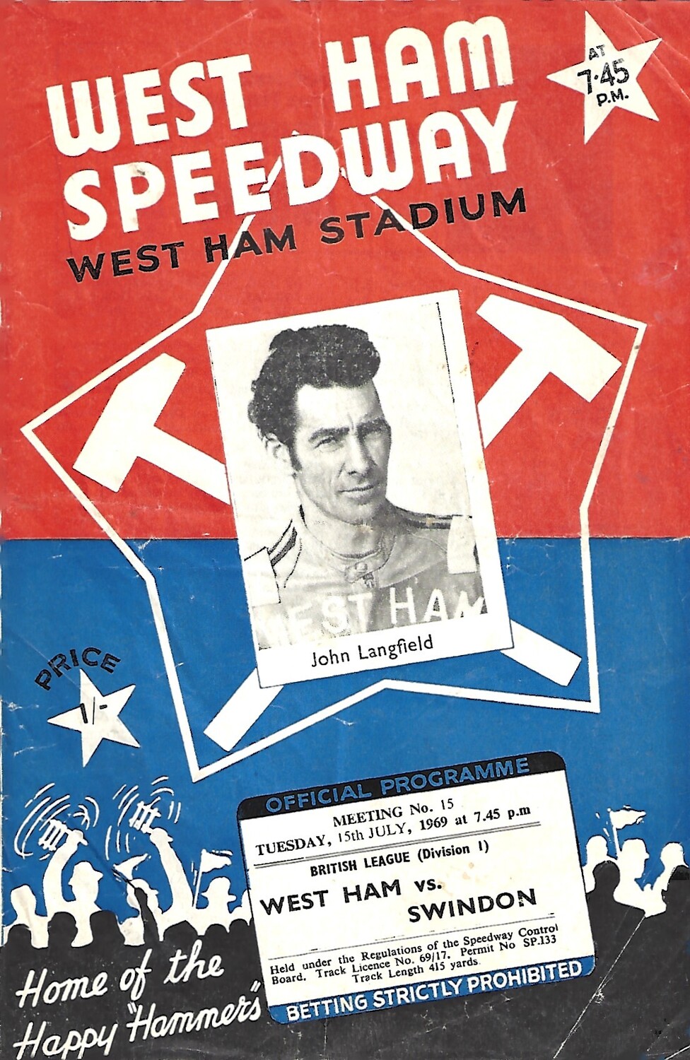 1969 West Ham v Swindon British League (15/07/1969) Speedway Programme