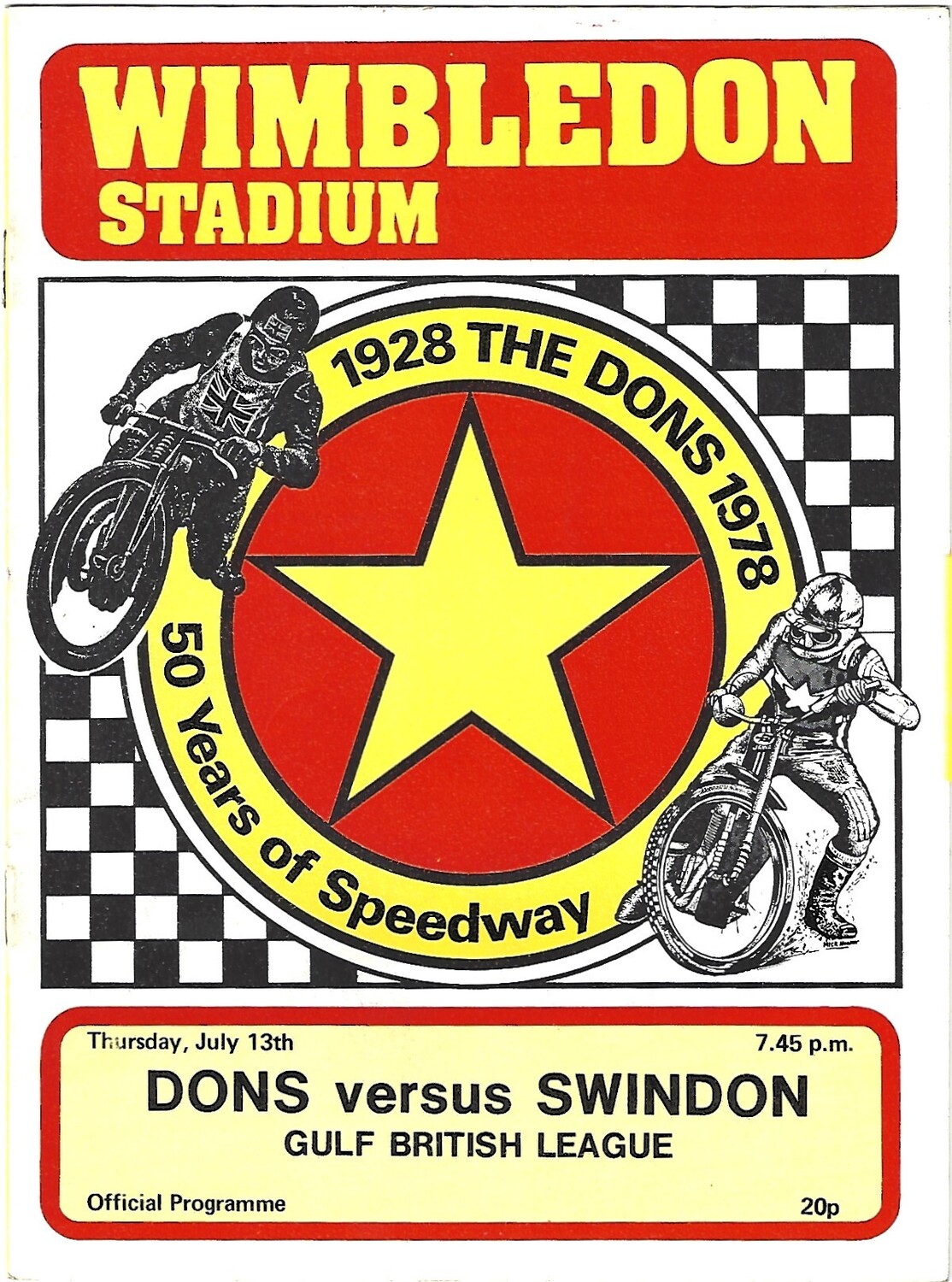 1978 Wimbledon v Swindon Gulf British League (13/07/1978) Speedway Programme